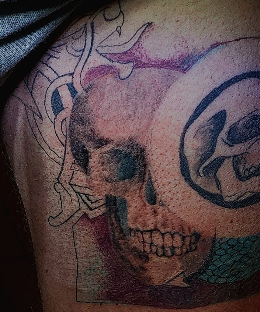 The artist, while relatively new to the scene, shows a raw talent that speaks louder than years of experience ever could. There’s an undeniable energy to the work—bold lines, fresh ideas, and a focus on individuality over conformity. The process is intimate and experimental, blending traditional tattooing with a DIY ethos. It’s not about flashy portfolios or mass appeal; it’s about creating something honest and one-of-a-kind, a living symbol of the unconventional spirit that this guerrilla tattoo experience embodies.